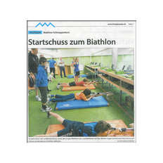 11 Kinder absolvieren unter der Leitung von Biathlon-National Trainer Markus Segessenmann, BOSV/SSM Langlauf Trainer Toni Burn, Markus Stoller Sport Schützen Profi und Initiantin Monika Germann das erste Training der neu gegründeten Jugend Biathlon Kandertal.